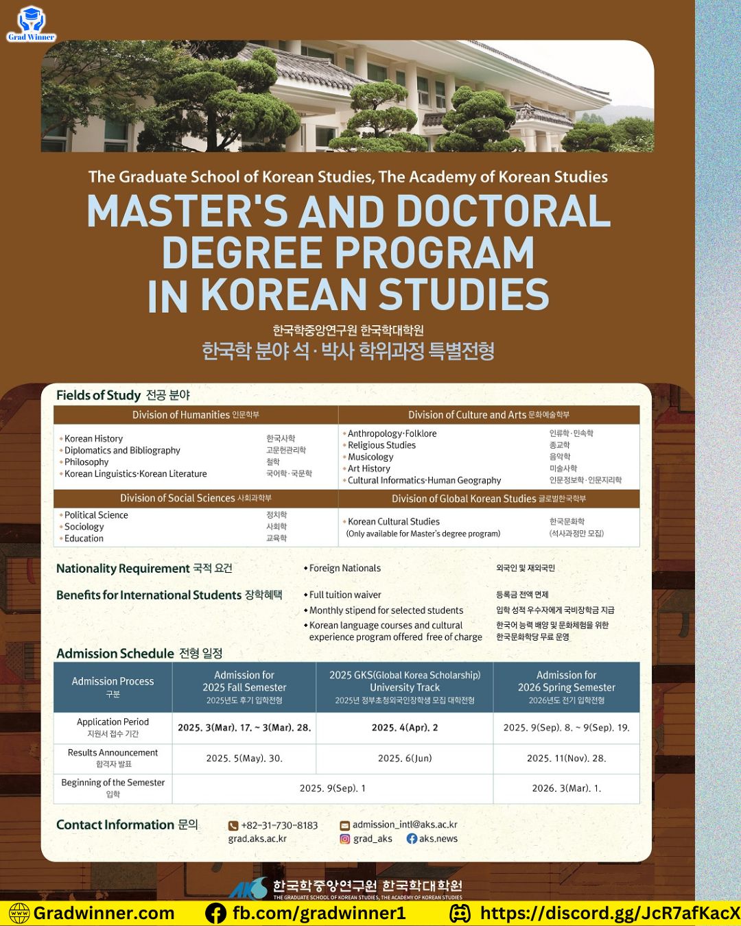 2025 Special Admissions for Masters in Korean Cultural Studies at the Academy of Korean Studies, South Korea ( Guaranteed Scholarship )