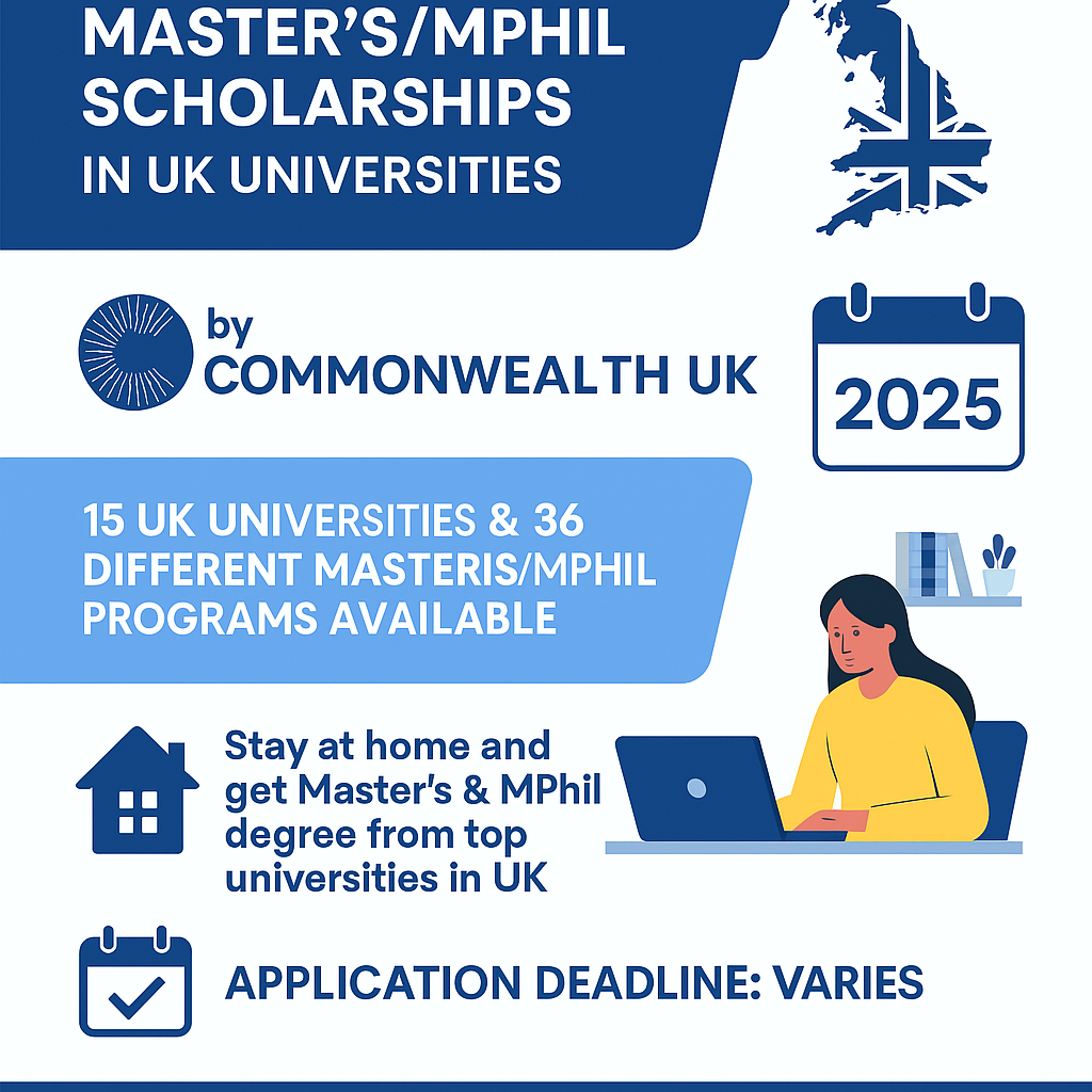 Distance Learning Masters/MPhil Scholarships in UK Universities by Commonwealth UK in different Fields at UK September/October 2025