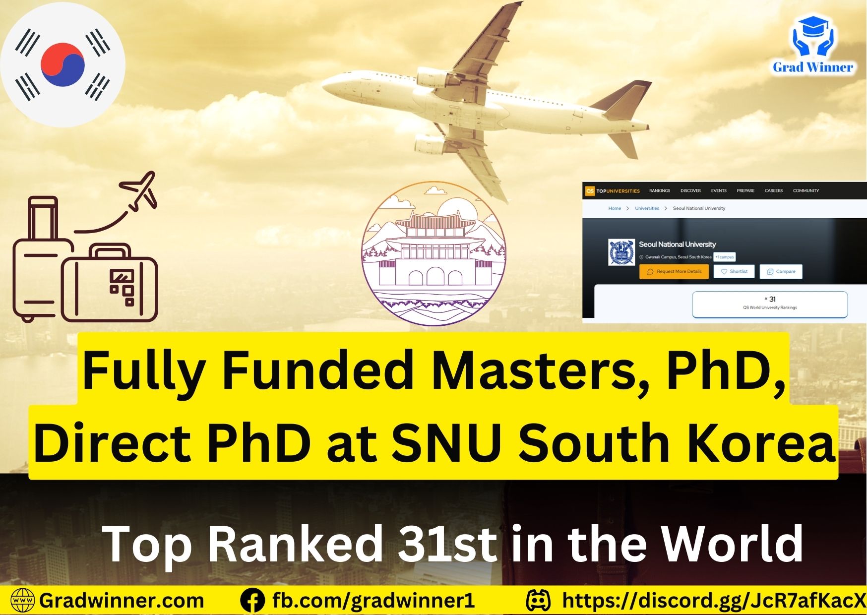 دنیا کی 31 ویں نمبر پر ٹاپ رینکڈ یونیورسٹی میں ماسٹرز، پی ایچ ڈی اور ماسٹرز لیڈنگ ٹو پی ایچ ڈی میں ایڈمیشن اور سکالرشپ- SNU ساؤتھ کوریا Fall 2025