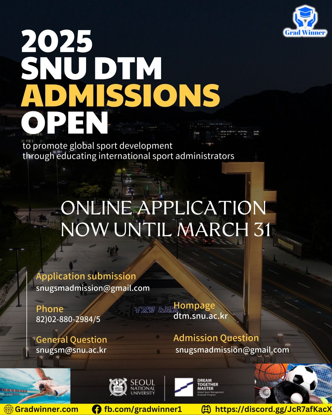 The DTM program at Seoul National University is the premier, fully-funded program for sport administrators and athletes who want to shape the future of global sports. With limited scholarships in this domain, this is a rare opportunity for future leaders to: