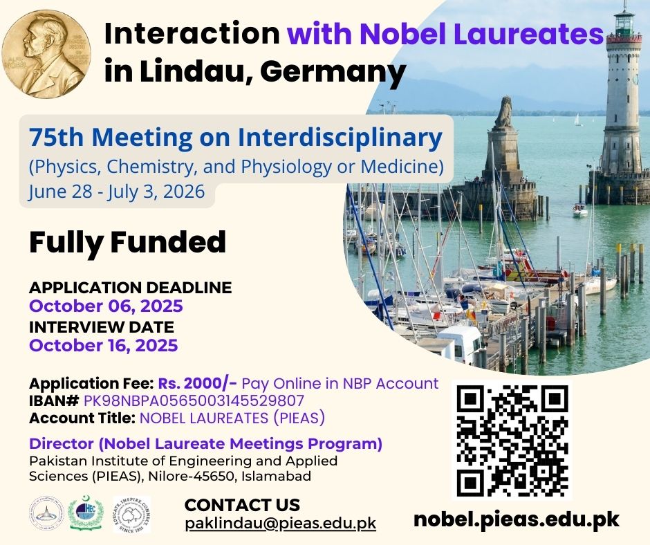 Chance to Interact & Meet with Nobel Prize Winners and Scientists from all over the World in Germany on Fully Funded Trip of one week to Germany (June 28 - July 3, 2026), for people who have done at least 16 years of education in Physics, Chemistry & Medicine or Physiology,(BS holders, MS, MPhil, PhD holders & Students, Post Docs can apply)