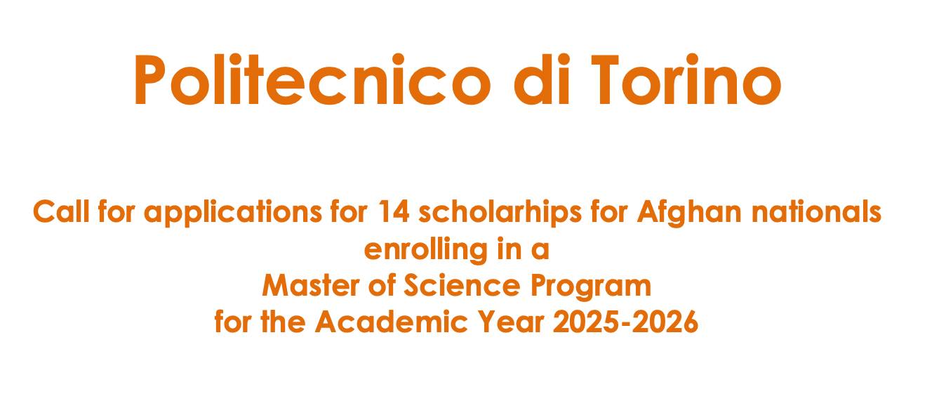 پولیتېکنیکو دي تورینو (ایټالیا), د افغان محصلینو لپاره ۱۴ ځانګړې ماسټری پروګرام بورسونه اعلان کړي. دغه بورسونه د میرمن جوزفین تیریسا پراټ په نوم او د هغې خاوند، انجنیر سیلوانو زورزي، په ویاړ د یوې میراث په ملاتړ برابر شوي دي.