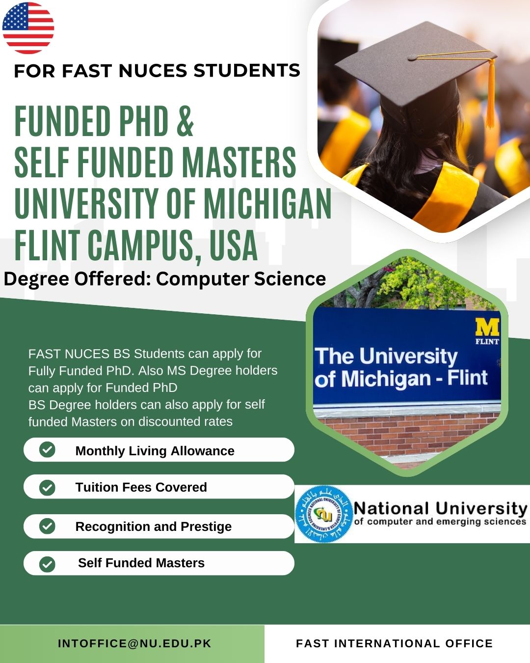 Fully Funded PhD & Self-Funded MS Opportunities at University of Michigan, Flint for FAST-NUCES Students – Fall 2025